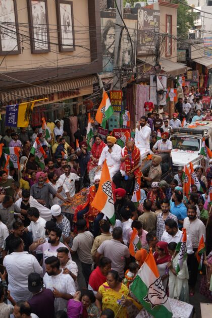 ਜਲੰਧਰ (ਦਿਸ਼ਾ ਸੇਠੀ): ਜਲੰਧਰ ਲੋਕ ਸਭਾ ਹਲਕੇ ਤੋਂ ਕਾਂਗਰਸ ਪਾਰਟੀ ਦੇ ਉਮੀਦਵਾਰ ਸਾਬਕਾ ਮੁੱਖ ਮੰਤਰੀ ਚਰਨਜੀਤ ਸਿੰਘ ਚੰਨੀ ਵੱਲੋਂ ਸ਼ਹਿਰ ਦੇ ਵਿੱਚ ਰੋਡ ਸ਼ੋਅ ਕੱਢਿਆ ਗਿਆ। ਇਹ ਰੋਡ ਸ਼ੋਅ ਮਿਲਾਪ ਚੋਂਕ ਤੋਂ ਸ਼ੁਰੂ ਹੋਇਆ ਤੇ ਰੈਣਕ ਬਜ਼ਾਰ ਵਿੱਚ ਸ਼ਹਿਰ ਵਾਸੀਆਂ ਨੇ ਚਰਨਜੀਤ ਸਿੰਘ ਚੰਨੀ ਦਾ ਫੁੱਲਾਂ ਦੀ ਵਰਖਾ ਦੇ ਨਾਲ ਸਵਾਗਤ ਕੀਤਾ।